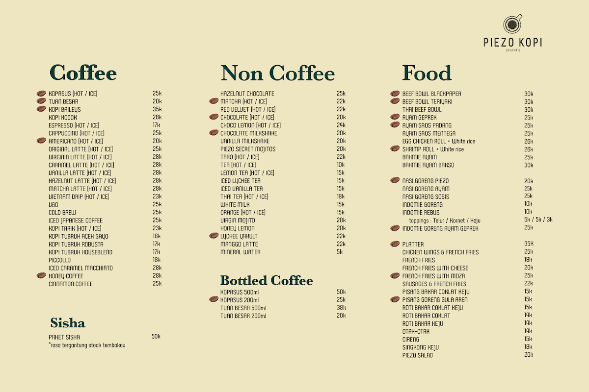 With rave reviews from customers praising both the friendly staff and the serene environment, Piezo Kopi invites you to indulge in a memorable coffee journey with every sip.